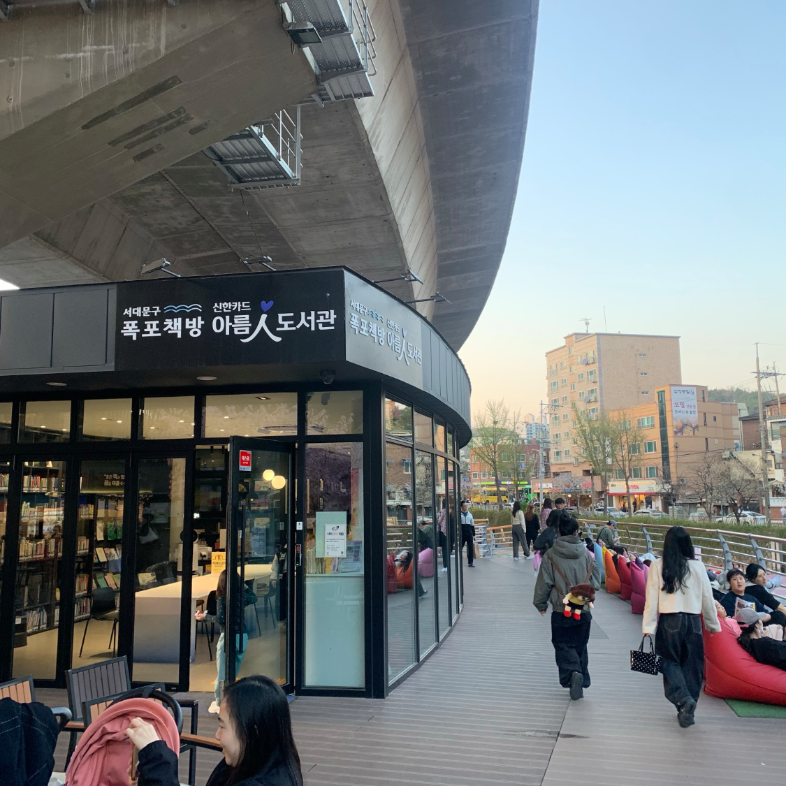 폭포를 보며 책을 읽을 수 있는 폭포책방 아름인 도서관👍