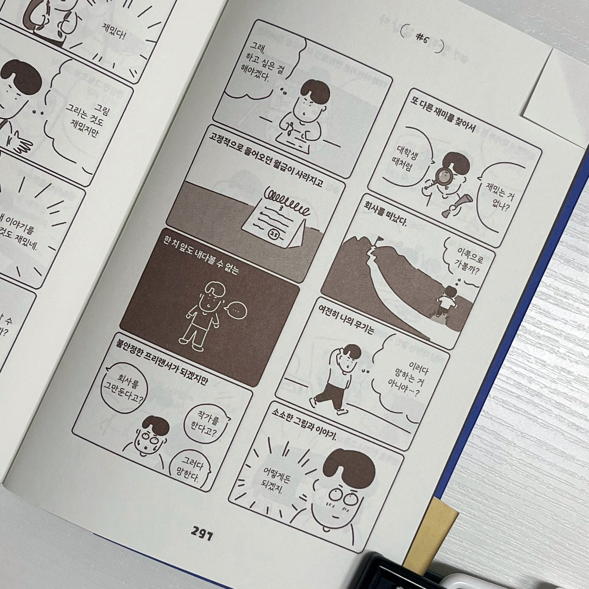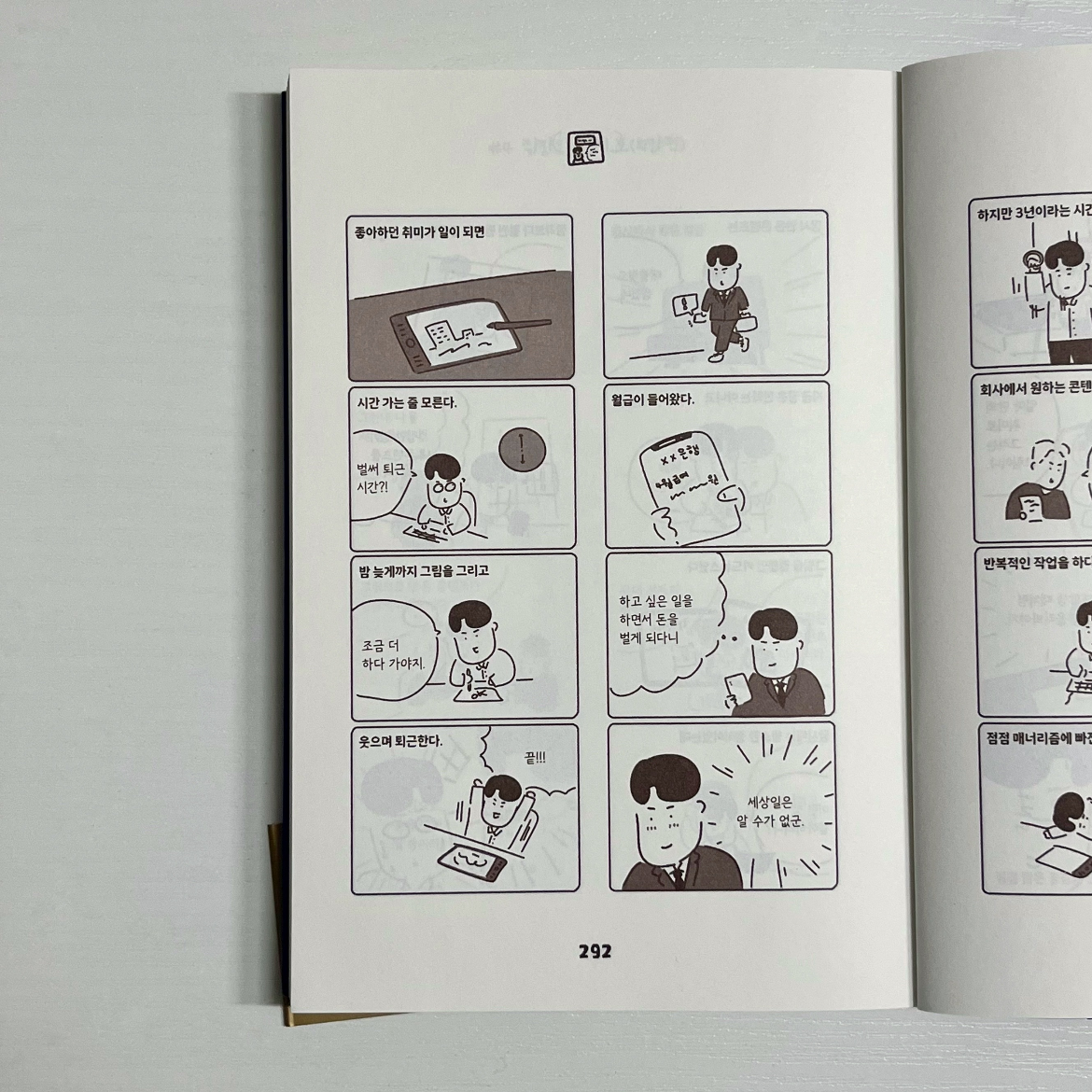 😄“좋아하던 취미가 일이 되면 시간 가는 줄 모른다. 밤늦게까지 그림을 그리고 웃으며 퇴근한다.” (p.292)