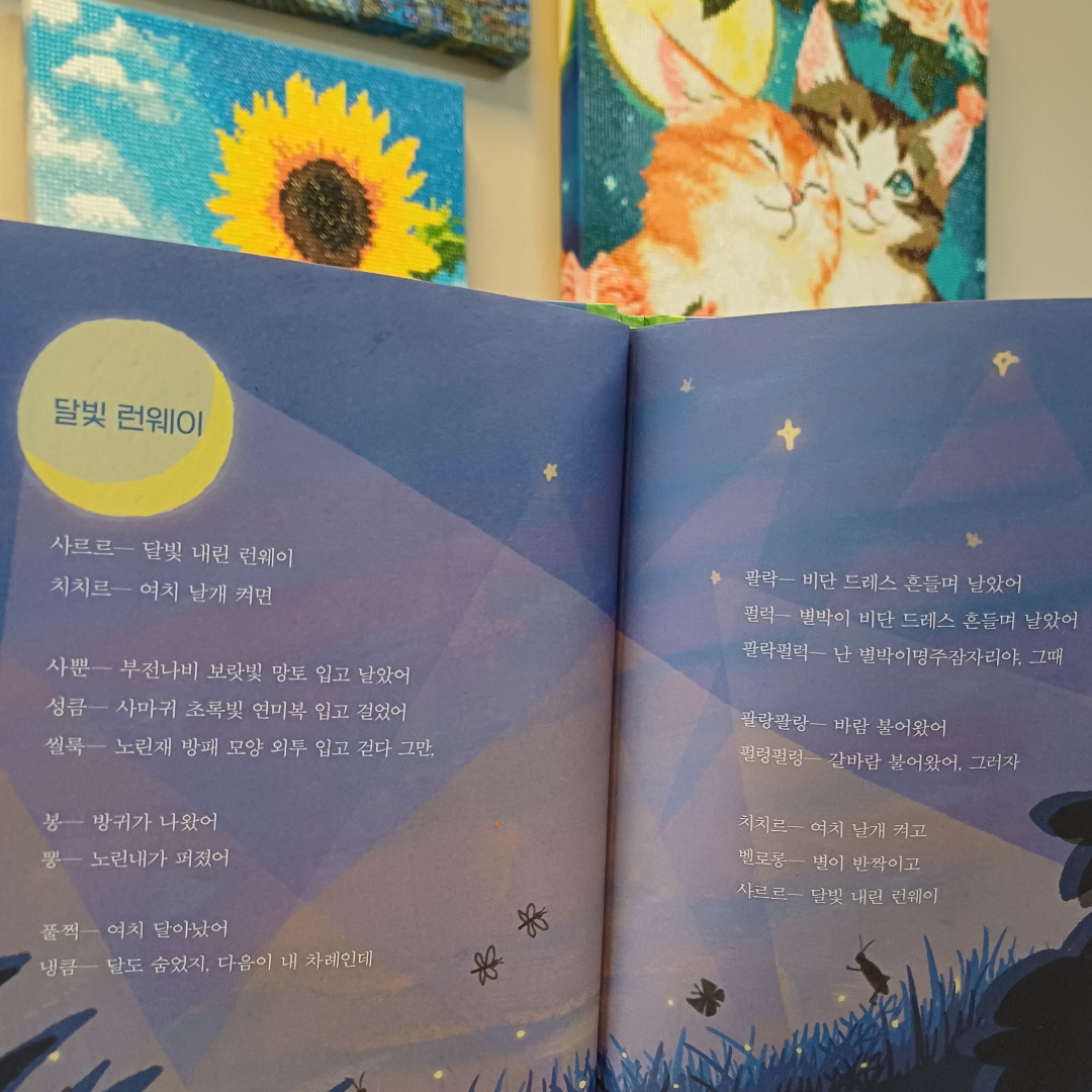 두 번째. 아이의 어휘력이 향상된다. 아무래도 동시에는 의성어, 의태어나 형용사가 많다. 그림책에도 자주 등장하지 않는 표현들을 일상생활에는 사용할까. 동시를 만나지 않았더라면 몰랐을 어휘를 많이 배우게 된다. 운율도 배우다 보니 아이의 언어가 노래 같아진다.
