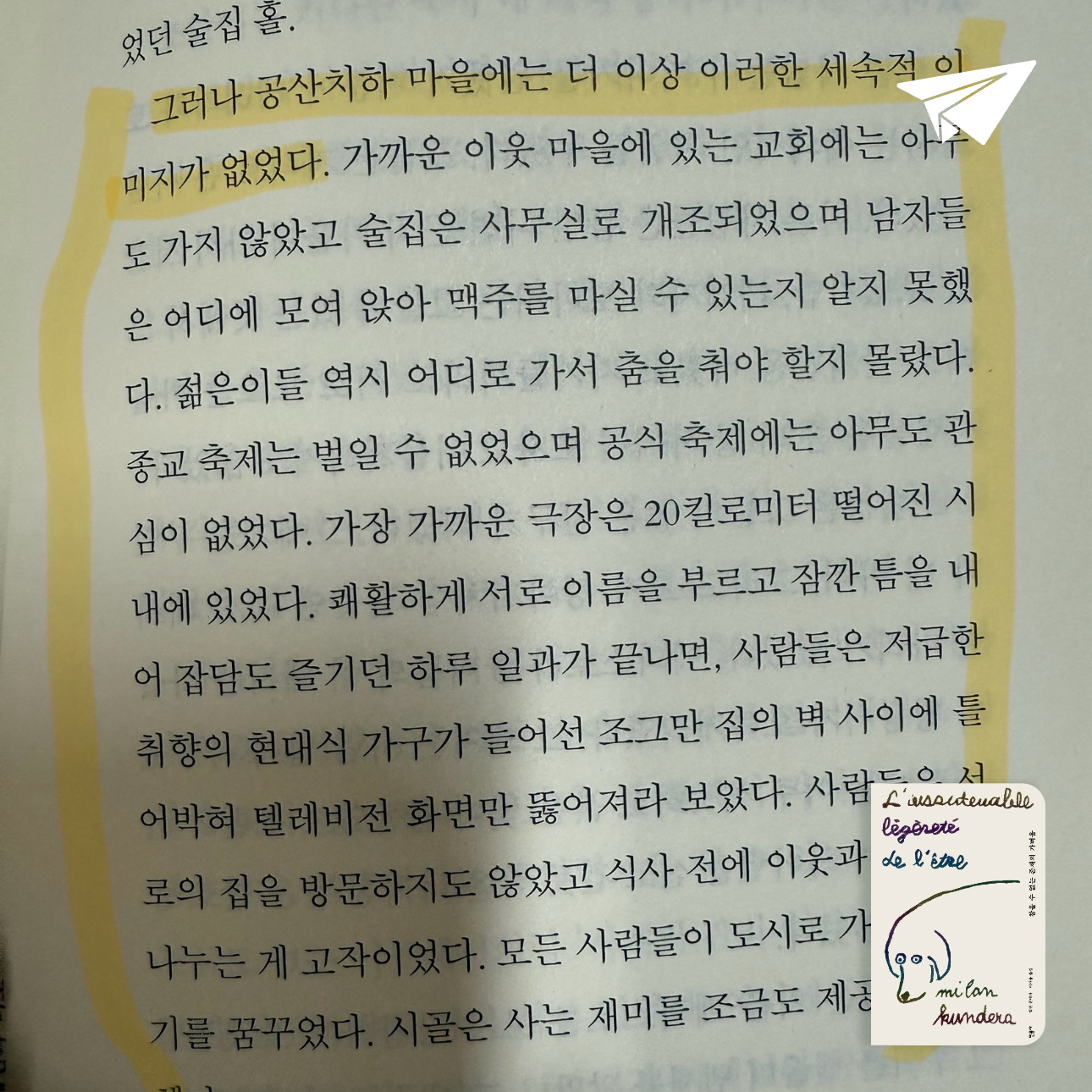 크게 생각해 보면 체코 프라하의 봄 전후로 역사 속 소용돌이에서 겪는 각 인물들의 처절한 인생사를 쪼개쪼개 보니 이러이러하더라 그래서 그들이 안타깝다란 생각이 들었다.