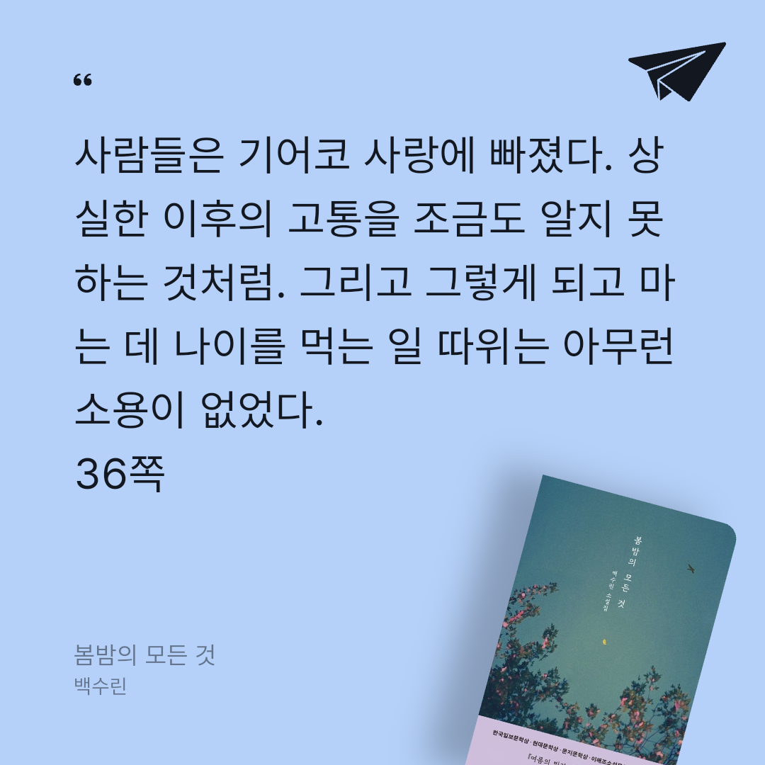 책의 어디에도 없지만 모두가 모여 봄밤의 모든 것을 일군다. 백수린은 점점 더 근사하게 쓰는 거 같다.