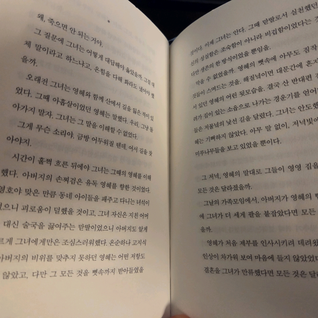 지인의 추천으로 읽게된 문학이다. 평소 문학을 잘 읽진 않아서 새로운 경험이었다. 술술 읽혀서 읽기 편했고 작가님의 필력에 온전히 몰입할 수 있었다.