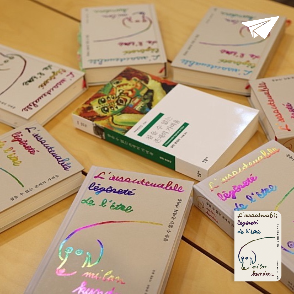 테레자는 그의 어깨에 머리를 기댔다. 안개 속을 헤치고 두 사람을 싣고 갔던 비행기 속에서처럼 그녀는 지금 그때와 똑같은 이상한 행복, 이상한 슬픔을 느꼈다. 이 슬픔은 우리가 종착역에 있다는 것을 의미했디. 이 행복은 우리가 함께 있다는 것을 의미했다. 슬픔은 형식었고, 행복은 내용이었다. 행복은 슬픔의 공간을 채웠다.(516쪽)