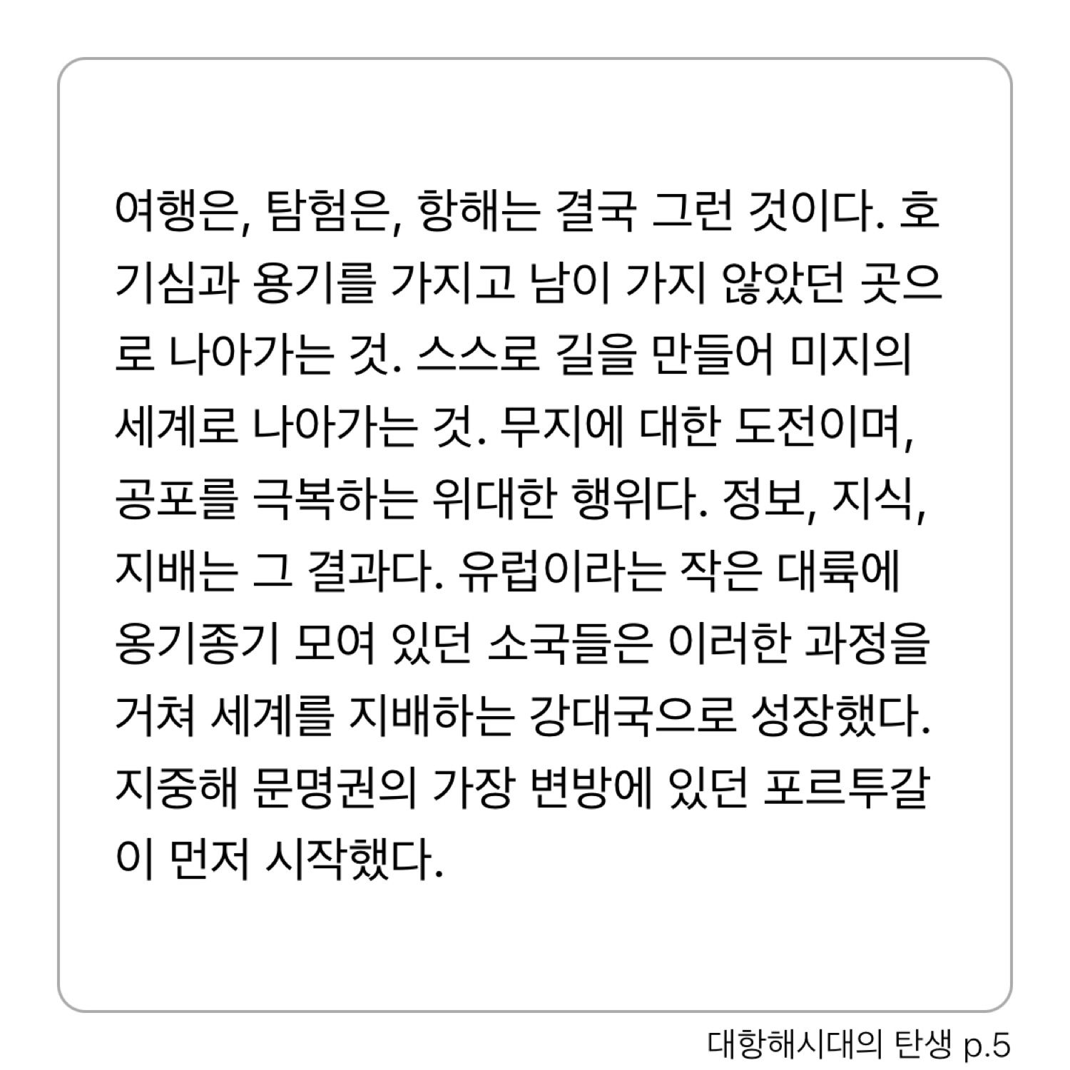 ‘대항해시대의 탄생’에서는 생소한 이베리아 반도의 역사를 알아가는 재미와 함께, 대항해 시대를 통해 우주 시대에 필요한 시대정신을 엿볼 수 있다.