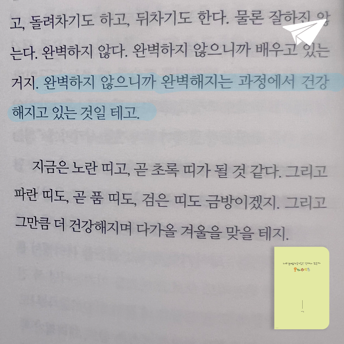 ‘ 완벽하지 않으니까 완벽해지고 있는 과정에서 건강해지고 있는 것일 테고.’