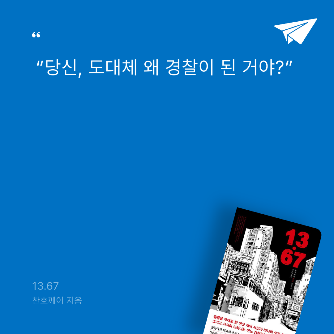 📃 “당신은 ‘경찰의 가치’를 위해서 목숨을 걸고 1호차의 폭탄을 해체했어. 그런데 어제는 아무 죄 없는 아이들이 당신 때문에 목숨을 잃었지. 당신이 보호해야 하는 건 경찰이야, 시민이야? 당신이 충성하는 건 홍콩 정부야, 홍콩 시민이야?” 나는 조용히 물었다. “당신, 도대체 왜 경찰이 된 거야?”