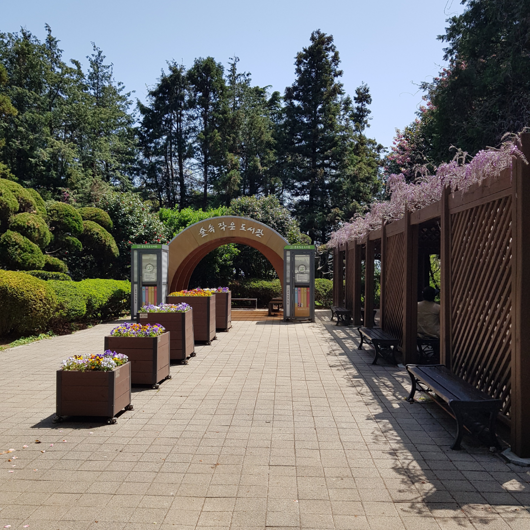 제가 알고 있는 가장 힙한 도서관을 소개합니다. 부산 민주공원에 위치한 '숲속 작은 도서관'이에요. 지금 방문하면 겹벚꽃과 함께 등나무꽃을 볼 수 있어요. 책 종류가 많지 않아서 읽을 책을 가지고 방문하는 걸 추천해요. 따스한 햇살 맞으며 꽃구경하고 숲속 도서관에서 책 읽으면 즐거운 봄소풍이 될 것 같아요.